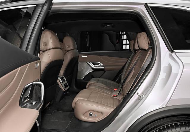 车身侧面,明显加长的车身非常的修长,颇有一股老款奔驰R级的视觉效果。似乎也是一种致敬。隐藏式车门把手依旧是传统的样式,有框车门保证了NVH性能,大尺寸轮毂不会缺席,随处可见的镀铬装饰,增强了华贵的感觉。车尾部分,贯穿式的尾灯有着粗壮的造型,双环式的光源和三叉相状的结构形成呼应,同样有着出色的辨识度,确立了家族设计,车顶扰流板不会缺席,后保险杠部分大量镀铬装饰,让整车的风格形成统一。